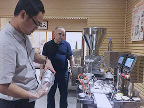 2019/09/06Our European and American customers have seen our machines from the website. Through our communication, they want to purchase candy machines that can make hearts, circles and various shapes, and come to our company to check the working mode of the machines and learn the production process.